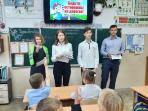 «Внимание! Дети и дорога» классный час во 2-Г классе провели учащиеся 10-А класса.