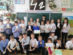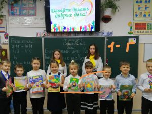 Ребята 1-г класса принимают активное участие во многих школьных акциях, конкурсах, но останавливаться мы не планируем. Спасибо за дружеские встречи с детьми 3-б класса и их сказку «Волшебный дневник», 9-а классу за проведённый классный час «Белый цветок».