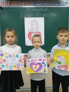 Ученики 1-г класса приняли активное участие в подготовке и проведении классного часа посвящённого «Дню матери«. Организовали выставку рисунков на окнах 1-го этажа школы, рассказали стихи о маме, подготовили видео поздравление.