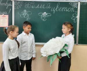 «Белый цветок » — ежегодная акция. Учащиеся 10-А класс провели классный час во 2-Г классе. Старшеклассники рассказали историю акции и предложили принять участие, оказав помощь нуждающимся. Ученики и родители с радостью откликнулись . ТВОРИТЬ ДОБРО- ЭТО ЗДОРОВО!